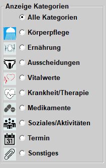 Durchgehend durch das gesamte Programm werden Symbolbuttons (Icons) für Aufrufe und zum Anzeigen von Pflegebereichen benutzt.
